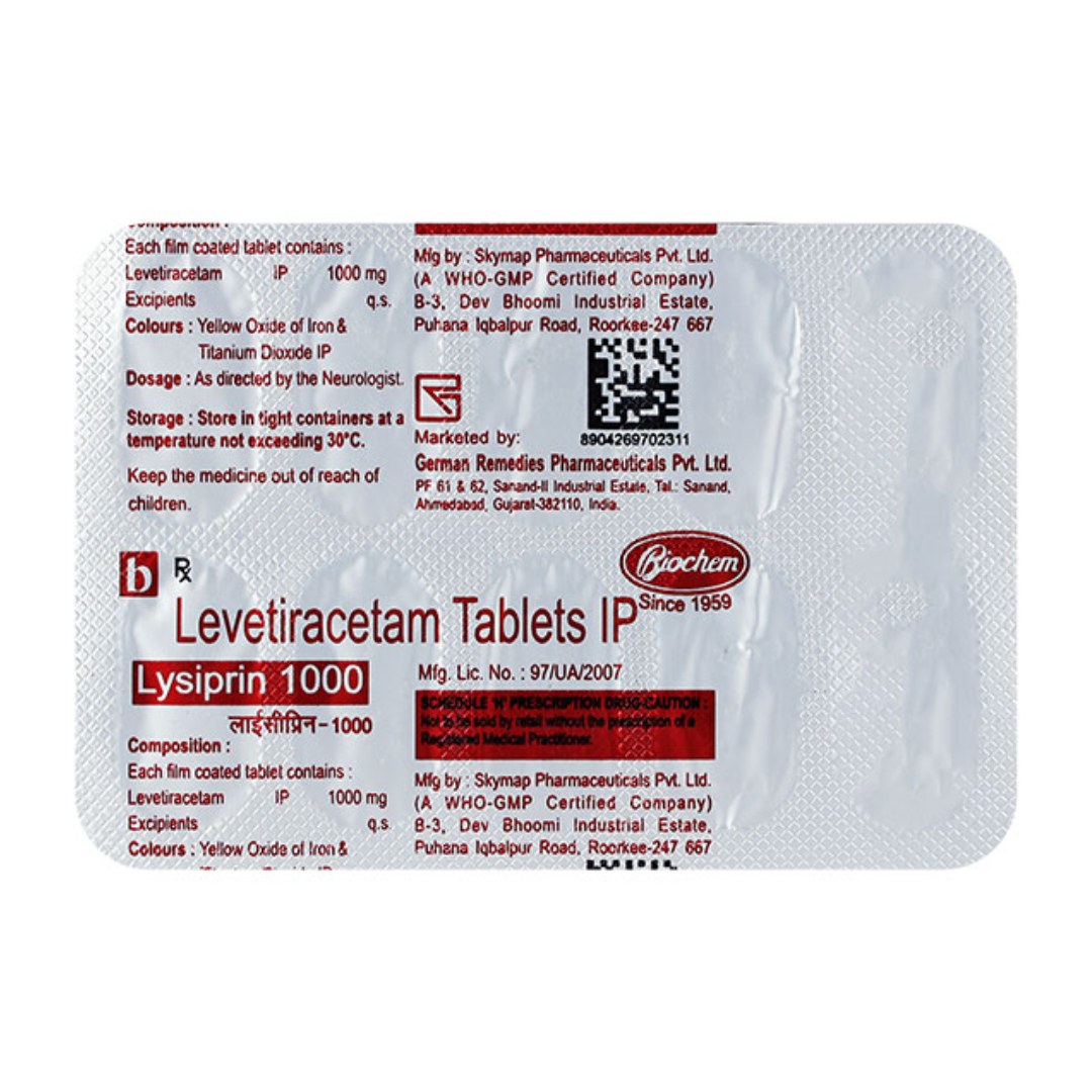 Lysiprin Levetiracetam 1000mg Tablet هو دواء مضاد للصرع يستخدم لعلاج النوبات (النوبات) في الصرع. يمكن استخدامه بمفرده أو مع أدوية أخرى. يساعد على منع النوبات مادام استمر في تناولها.